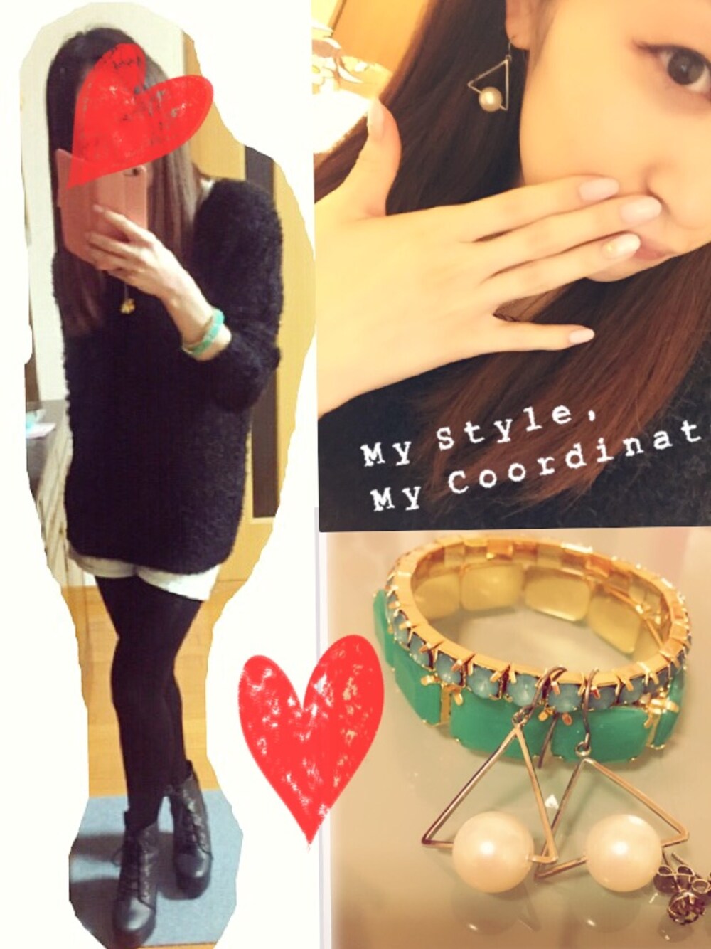 H&Mのニットはモコモコであったいし 丈も長いからお気に+。:.゚ヽ(*´ω`)ノ゚.:。+゚ GUのブレスとピアスは確か490円♡ 激安&可愛いのいっぱいあったし まだまだ欲しいなー♡(*゚v゚*) パールピアス激かわ♡
