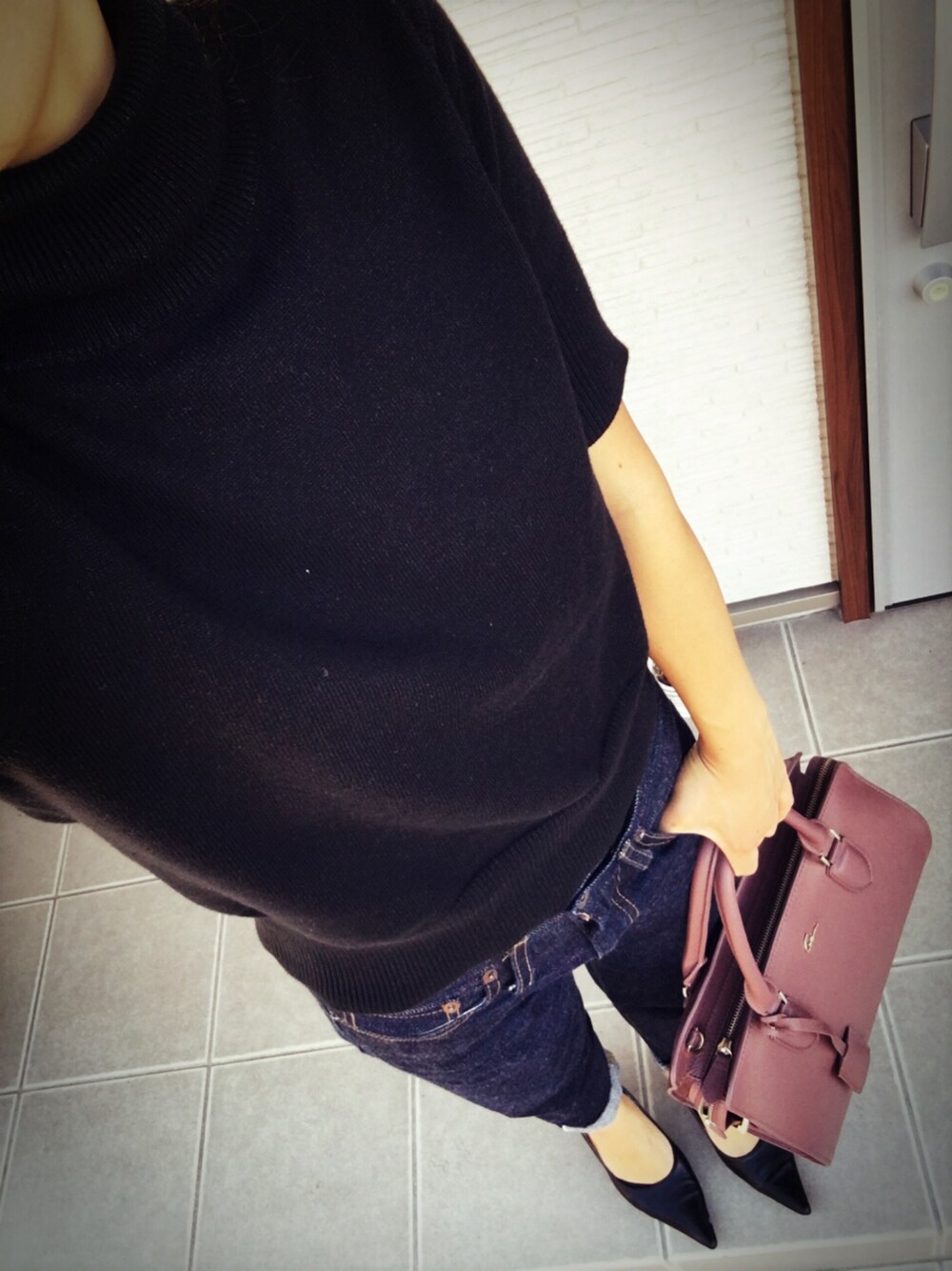 今日は暖かかったので 5分袖ニット◡̈⃝