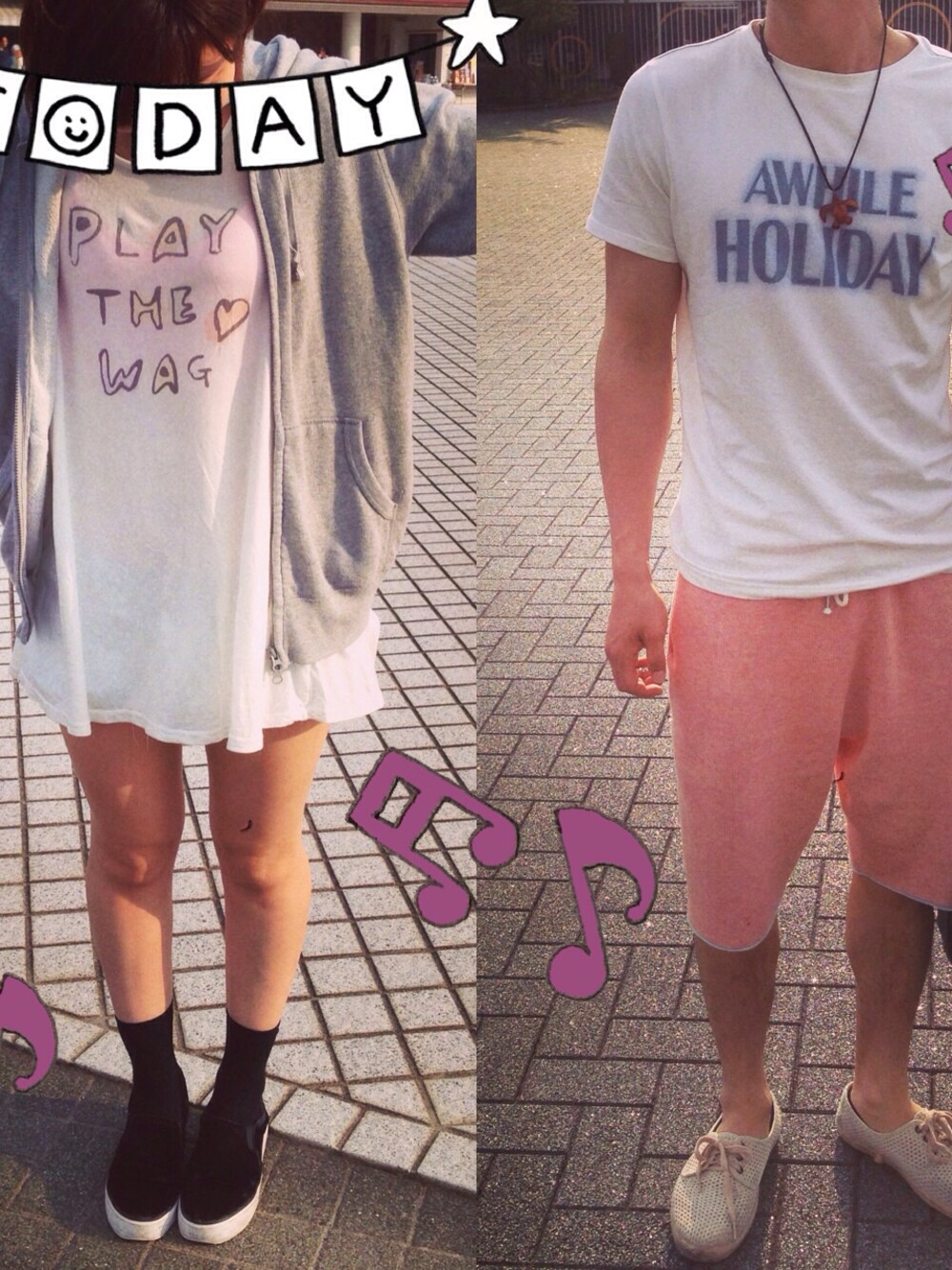 近所の公園にお散歩☺︎ バレないような、さりげない ブランドペアルック…
