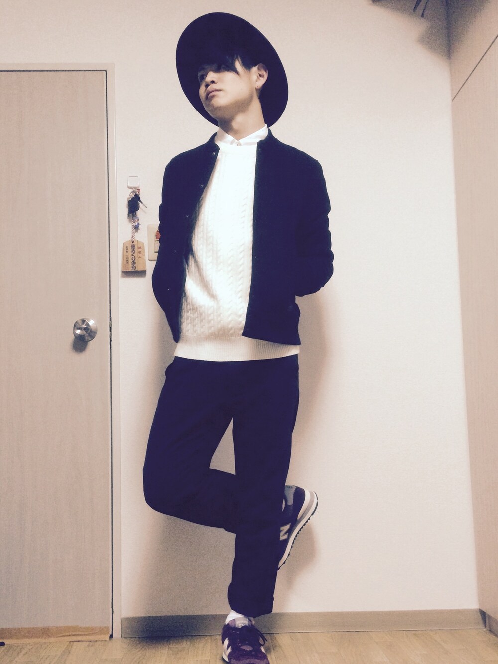 色々と勉強中 んーやっぱりもっと細身のパンツのほーが 締まって見えるのかなー 今回のニューアイテムは 流行りのつば広ハットと、ニューバランスのスニーカーです