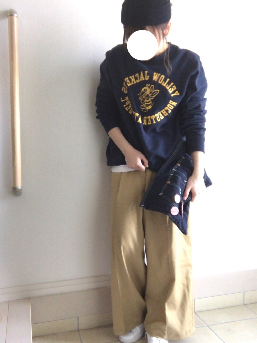 らくちんコーデ。 アウトレットで購入したチャンピオンのスウェット。 オープンしたばっかりだったから2枚買うと20%オフにつられてパーカも購入したやーつ🙄 チノワイドもFUDGE見て欲しくなったやつです😂🙌