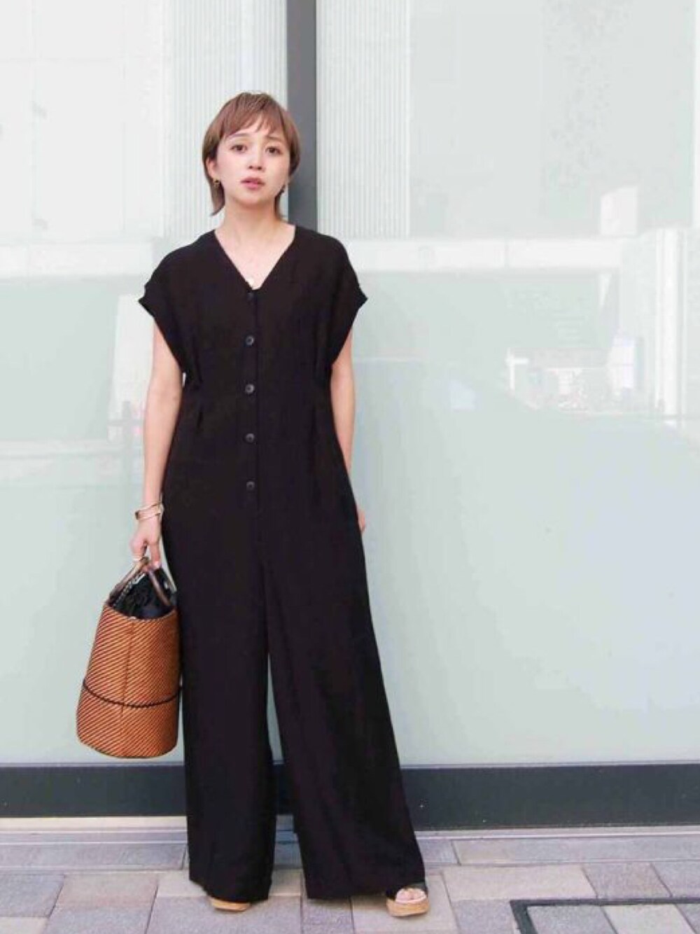 Noripiのつなぎ/オールインワン「リネンVネックオールインワン」を使ったコーディネート