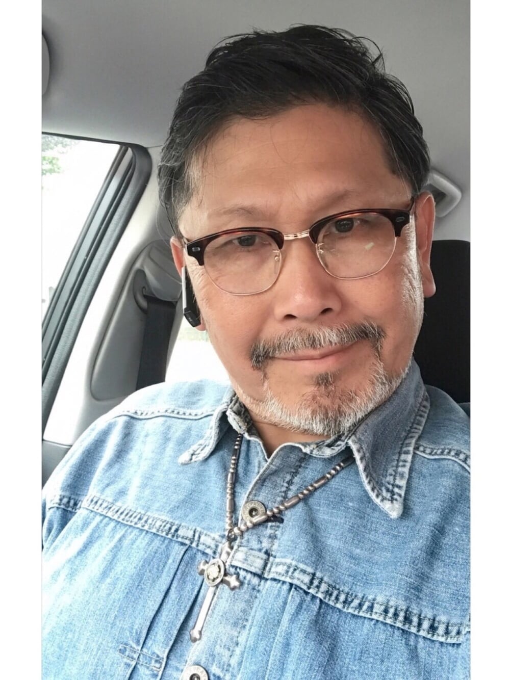 皆さん今晩○〜〜‼️😎🎩👍 今日は、雨も☂️降り 少し涼しいので 薄手のデニムGジャン風 デニムジャツ 流石 replay おシャンティだがし(ᵔᴥᵔ)👍 忙しいので 車中撮影で申し訳無い🙏 週一リラクゼーションヘッドスパの帰りにツーブロックでキマリ アザっす🙇👍