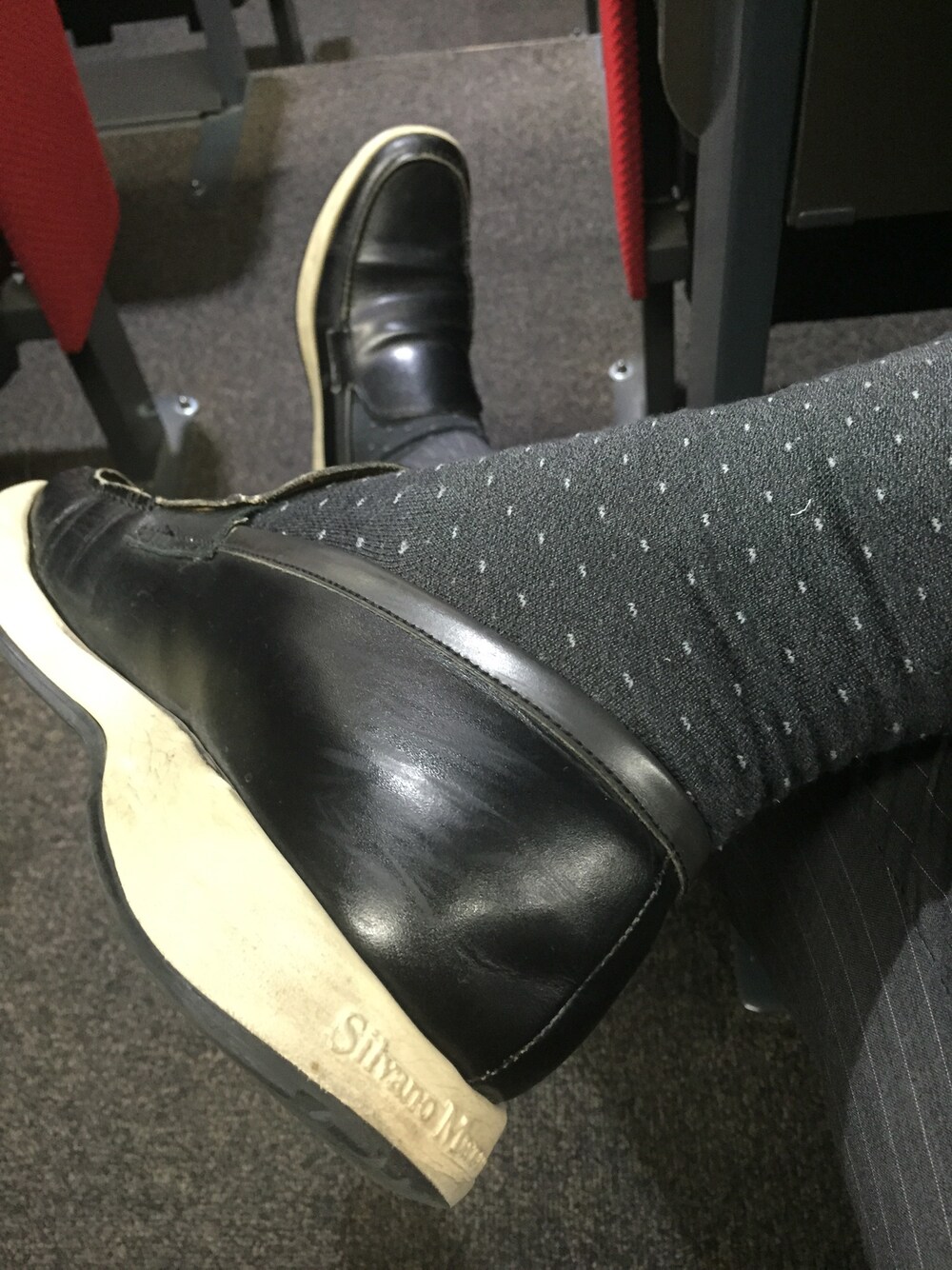 会議中なので、足下のコーデ Silvano Mazzoのスリッポン ラルフローレンPOLOドットソックス‼️👍 失礼しますm(_ _)m