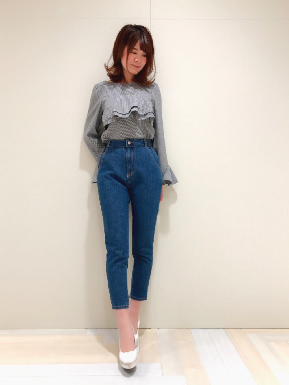 いむなおのシャツ/ブラウス「ヨークフリルブラウス」を使ったコーディネート