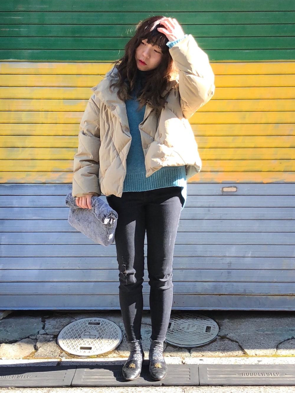 ダウン嫌いでしたが、これはほんとかわいい♡ スタンドネック気味な襟といい、シルエットといい、なによりステッチがダイス型なのがツボ♡