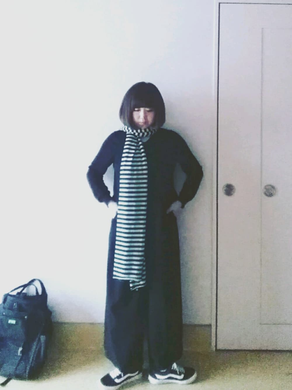 gmデゴザイマスーo このニットのストール もうね♥何年も愛用してて とってもお気に入り。 かわいさをグッと引き立たせるために 黒×黒コーデに合わせてみたぁー☝