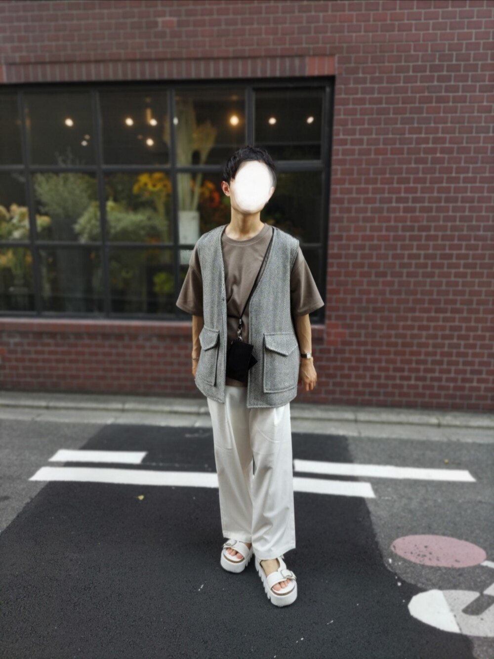 ご覧いただきありがとうございます。 ツイートベストを使ったコーデ。 AERERの昨年のポンチTはお気に入りのグレージュ。