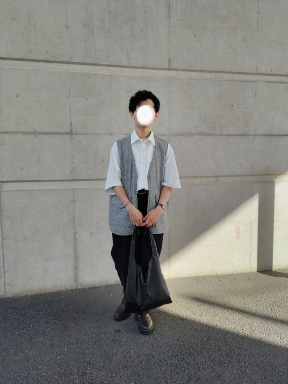 いつもご覧いただきありがとうございます。 カジュアルなツイードベストを使用したコーディネートです。