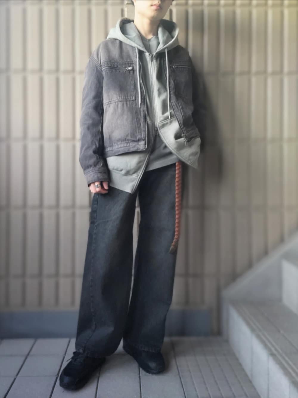いつもご覧頂きありがとうございます フルジップパーカー×デニムジャケットコーデ ヴィンテージ加工のアイテムを組み合わせることでカジュアルながらも落ち着いたら雰囲気に仕上がります