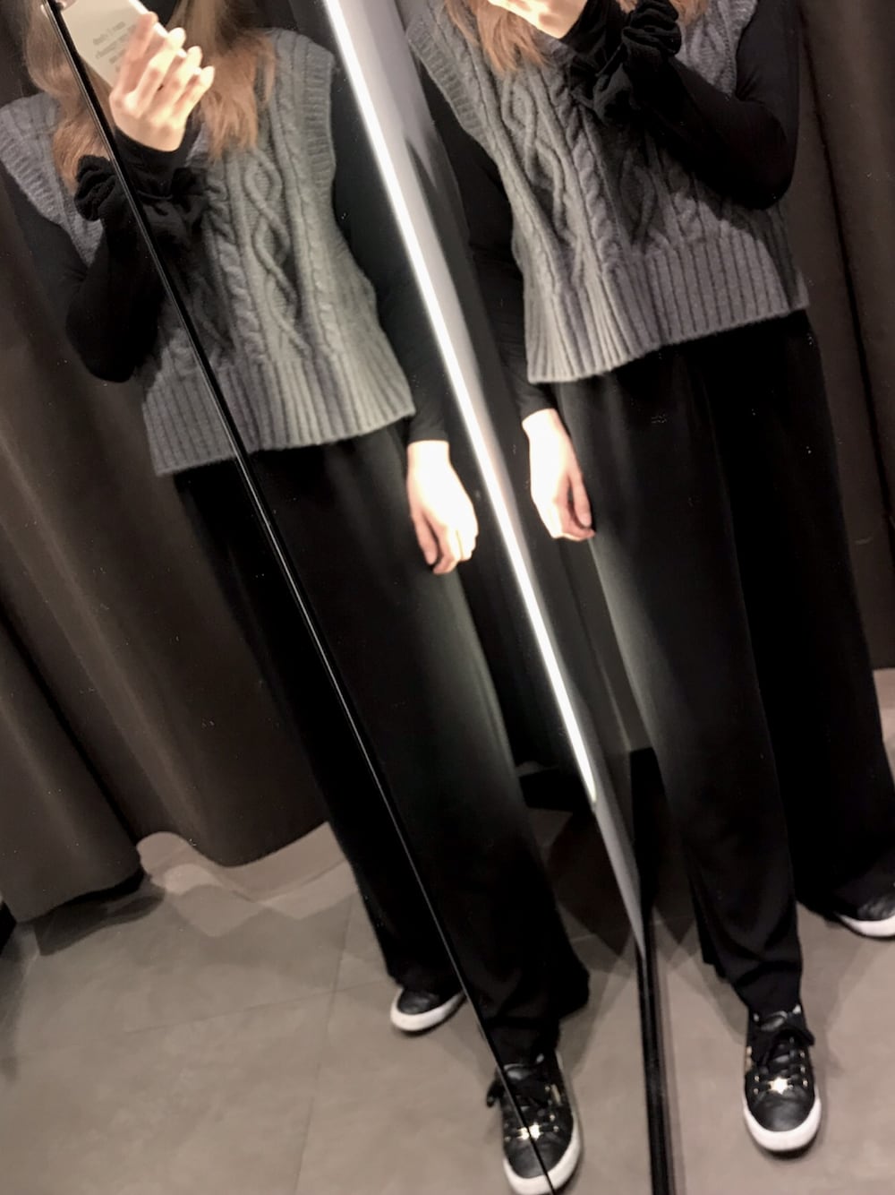 少し短めニットで脚長効果期待..🐮🥕笑 本日もモノトーンです、