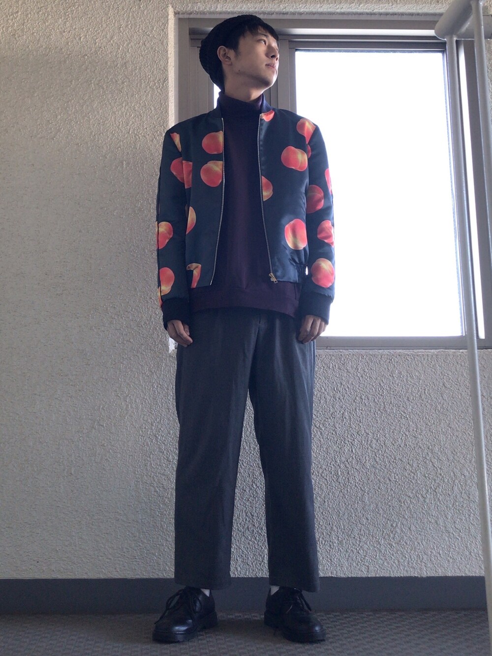 ✨2020年一発目コーデ‼️✨ トップス(STUDIOUS) 🆕 アウター(paul smith) ボトムス(FREAK'S STORE) シューズ(FREAK'S STORE) 帽子(RAGEBLUE) 🆕 明けましておめでとうございます🎊 今年も宜しくお願いします🙇♂️ 2020年一発目のコーデはパープルの タートルネックを合わせたコーデ✨ なかなか難しいアイテムで合わせ方が 分かりませんでしたが、存在感のある 桃柄MA-1を合わせインパクトを与えて 見ました😁 個人的に今年はパープルが来てるので 今後もパープルコーデを投稿出来れば と思います♪♪ ※メルカリにて衣服を出品しているので プロフィール欄のリンク先からご覧頂け ればと思います😊