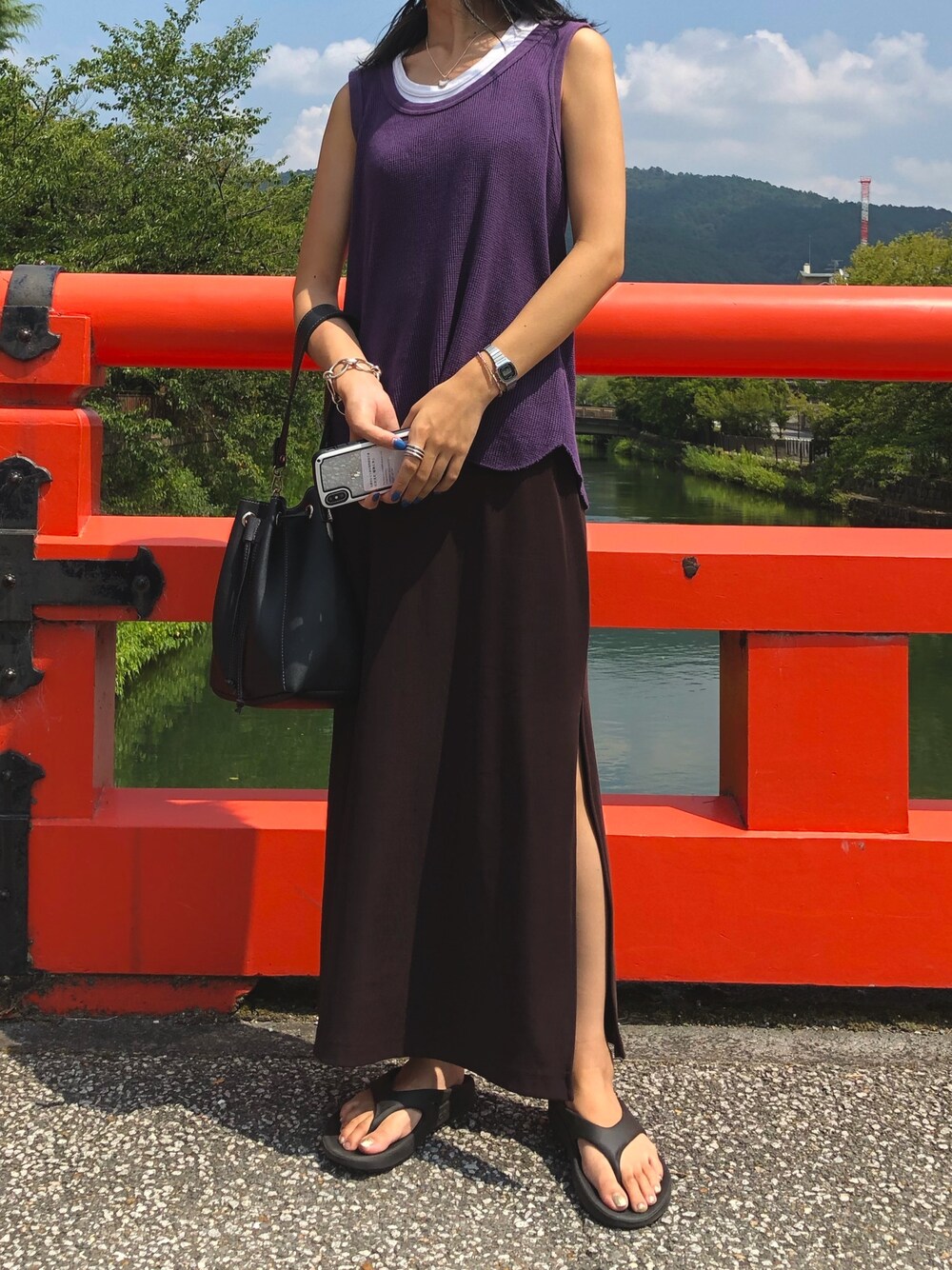 りのタンクトップ「ワッフルタンクトップ」を使ったコーディネート