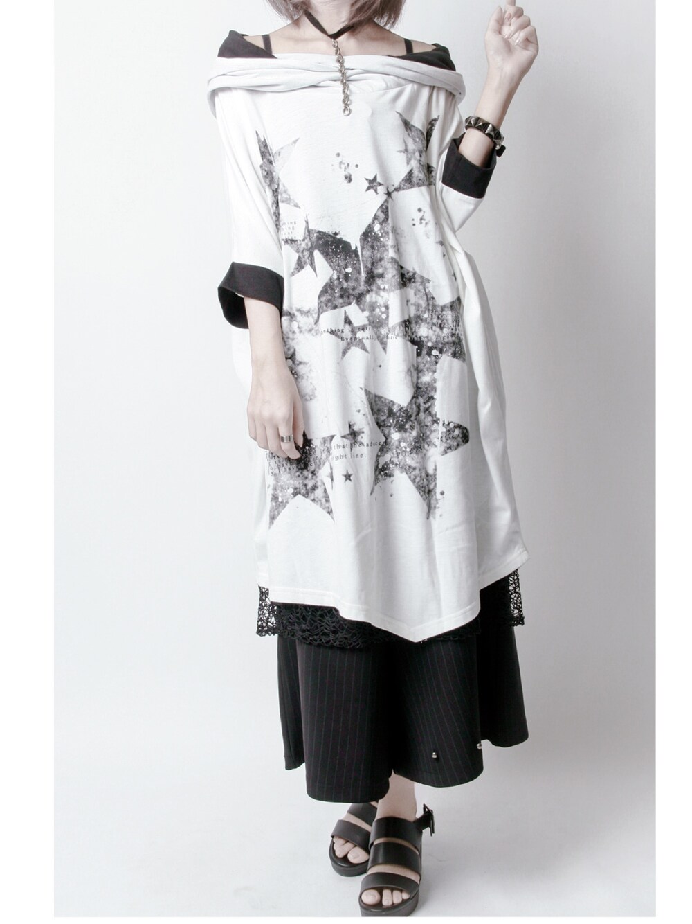 暑いので肩出しアレンジで。 ボトムもラクちんフレアパンツ。ウエストを折って短くしています。 足首出して涼しく!