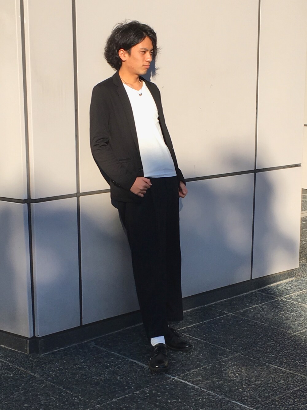 ウォッチありがとうございます!🤗 今日は天気が12月とは思えないほど良きだったので涼しげなコーデです!(^^♪ テーラードジャケットとワイドパンツでモノトーンコーデ!😎ネックレスをポイントにしてみました!😊