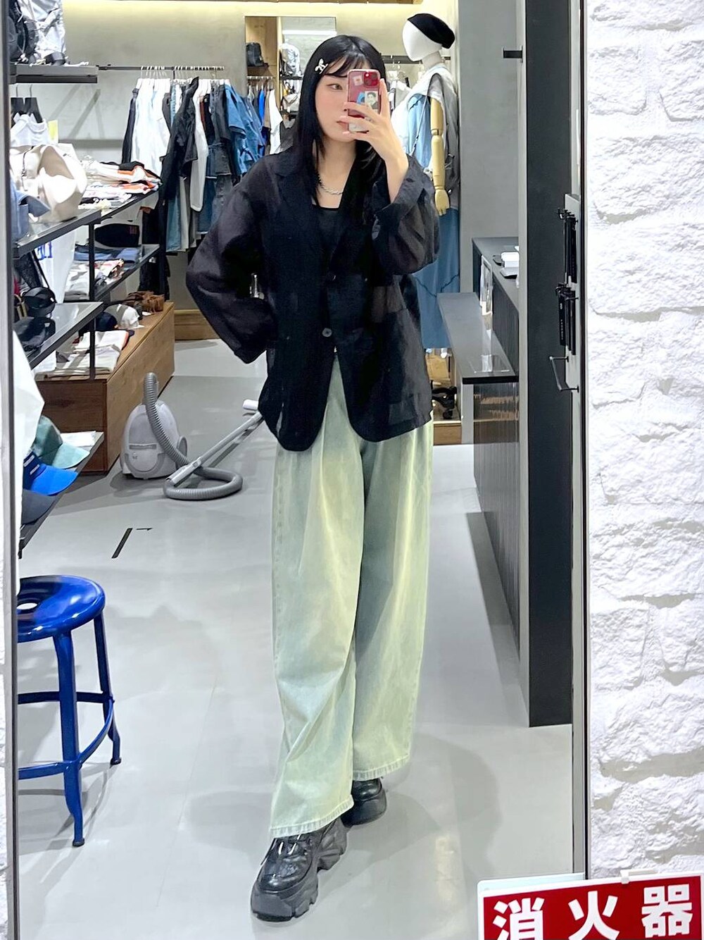 ご覧いただきありがとうございます🙇♀️ 少し前の出勤コーデです💖 ブラックアイテムだけでは重くなりがちですが、シアーアイテム×ブルーデニムパンツで季節感を出しつつ普段の雰囲気に合わせることができますよ🙆♀️🫶 デニムパンツはLサイズでダボッと履いて、スニーカーにたまる感じが気に入っています💖🙆🏻♀️まʓ♡