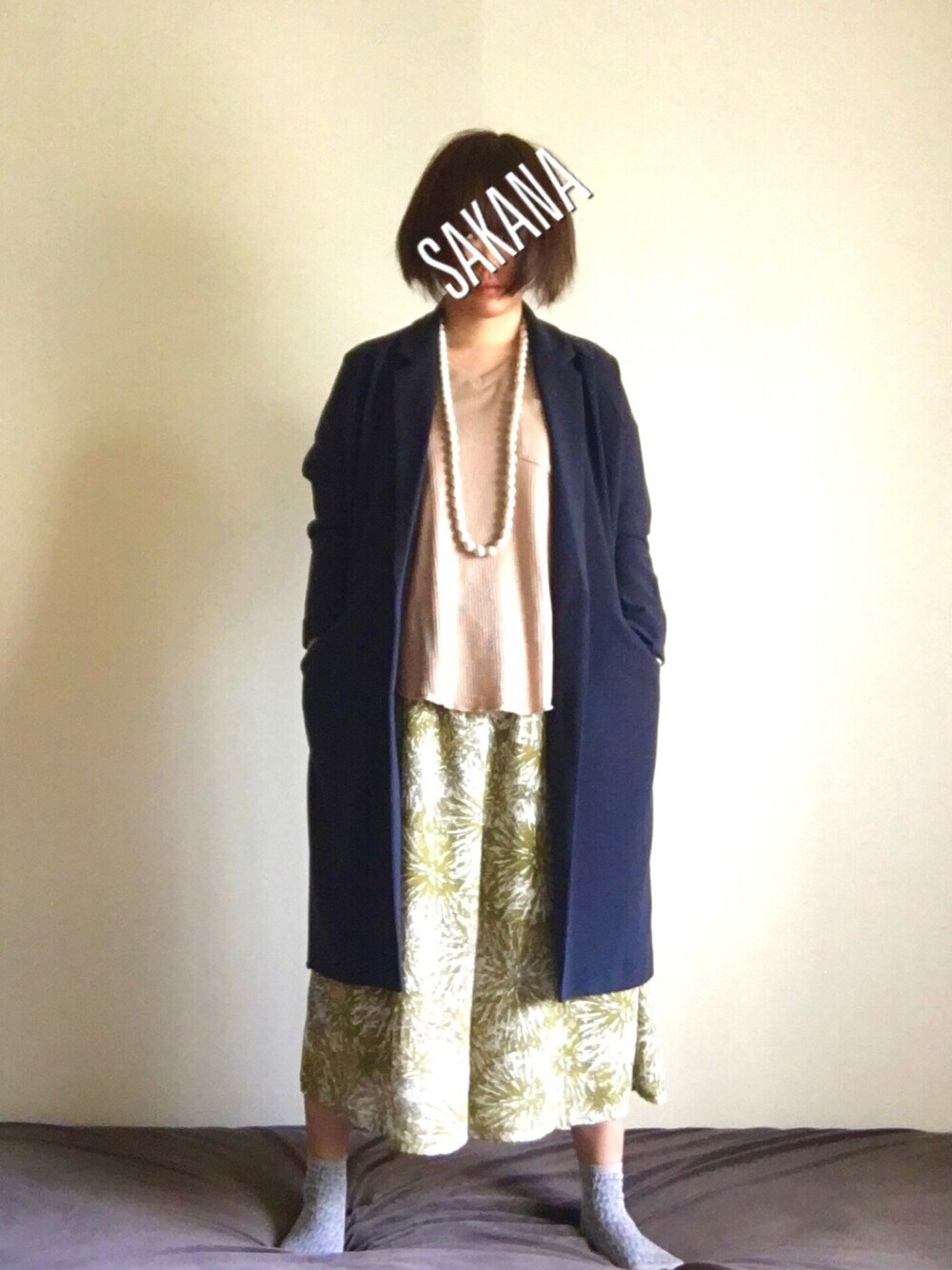 きいろベージュでまとめて、紺色できりっ 出勤