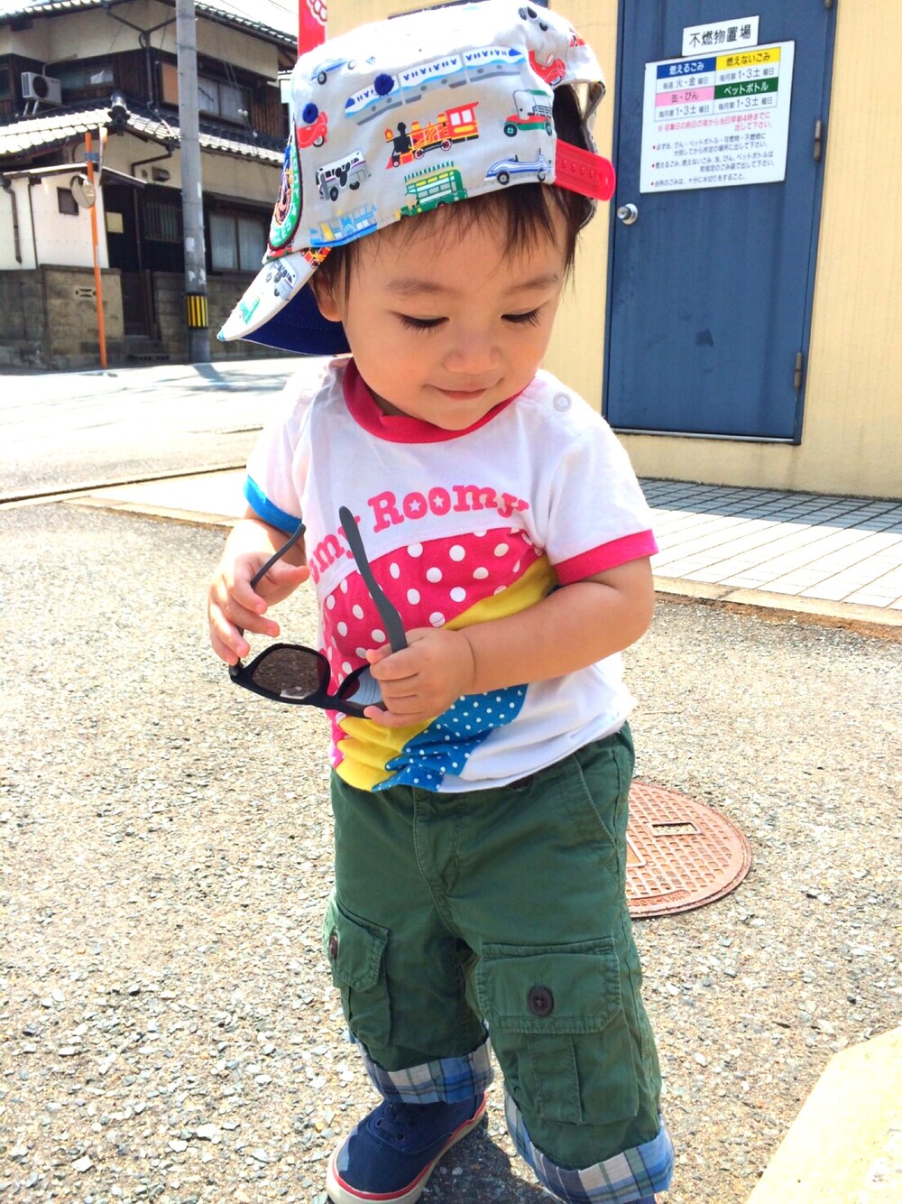 ディズニーの帽子は大きめだけど久々かぶせてみましたw 最近イヤイヤが多いけどこれは気に入ったみたい(o^^o)妹よありがと〜