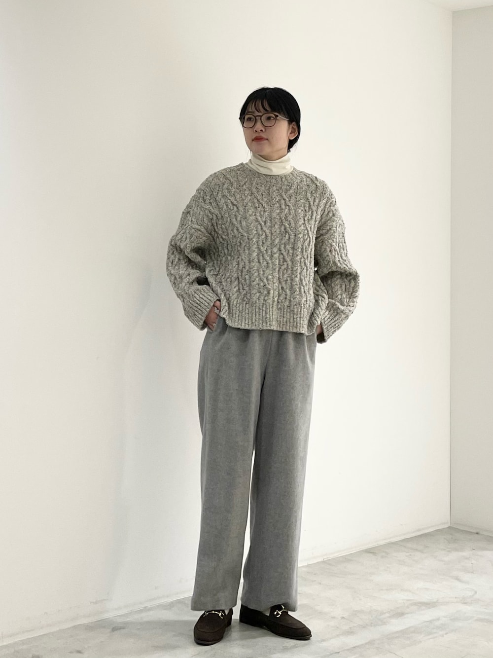 パンツはふかふかの触り心地で 暖かく着用いただけます^^ しっかりと裏地付きで ストレスフリーなところも◎ 無駄のないシンプルなデザインが 着回しにも困らないアイテムですよ〜
