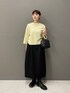 YLEVEの毎シーズン大人気のプルオーバーからイエローカラーが登場しました! カットソーよりしっかりスウェットよりは軽い 着心地のいい使いやすいアイテムとなっております◎ コンパクトな着丈も人気の秘訣ですね。 スカートはHAVERSACKを合わせました。 コクーンシルエットでトレンド感のあるデザインが可愛いアイテムです! 上質なウール素材でトップス次第では綺麗めにも着ていただけますよ^^