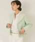 旬なミントグリーンが映える春コーデ。 ・スパンコールツイードフリンジ ジャケット 堅く見えがちなツイードも大きめな襟と裾のフリンジでファッショナブルに。 パンツ、スカート、ワンピースどのアイテムにも合わせやすい丈でたくさん着回しを楽しめます。 入学シーンにもぴったりの華やかさです。 ・グログランセミフレアワイドパンツ 今年らしいセミフレアのデザインがハンサムな万能パンツ。 ハリ感があり、厚手のニットからシアーのブラウスまで幅広く合わせられます。 ・カットワークハンドBAG 春らしいキャンバス地が覗くカットワークのデザイン。 程よい大きさでたっぷり入るサイズ感が嬉しいデザインです。