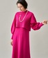 Web限定の主役カラーワンピース。 ビビットなピンクは一際目を惹く華やかさで、女性らしさを引き立ててくれます。 合わせる他のアイテムは落ち着いたベーシックカラーに揃えてあげるとバランスよく仕上がります。 ニットベストがウエスト位置を高く、細見せさせてくれるので重たい印象になりません。 素材はさらっとした柔らかい肌あたりで、かなり暖かく真冬でも安心です。しっかりと厚みがあるのでインナーラインを拾いにくく安心です。 丈は長めですが、ウエストと腰周りが割とぴったりくるので普段のサイズでお召しいただくのが良いと思います。