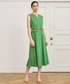 ランチ会にもぴったりなワンピースコーデ。 カーディガンは配色部分がアクセントに。しっとりとした肌あたりで夏まで気軽に羽織りやすい生地です。前を閉めてトップス使いも可能です。ベストな丈感がワンピースにも、ボトムス合わせにもはまります。 鮮やかなグリーンのワンピースは美シルエットで一枚で美しく仕上がります。ウエストを強調したい時は、ポケットデザインの上部分にベルトをするのも◎羽織りや色で表情が変わり、汎用性が高いので色違いで揃えたくなるアイテムです。 普段ボトムスは360サイズですが、肩に合わせて380サイズで着用しています。ウエスト部分は切り替えがあるので大きく見えなく、丈もちょうど良かったです。