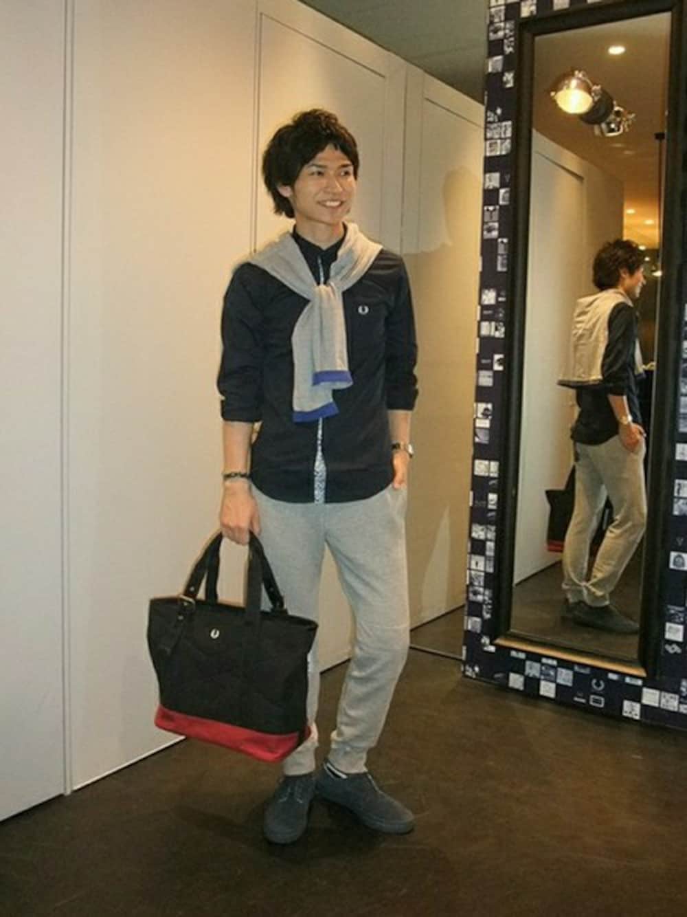 英国リバティ社別注のボタンダウンシャツです。フラワー×ローレルリースプリントで切り替えられた、下前立てがポイントです。 今年流行であるタウンユースのスウェットパンツに、同色のカーディガンをアクセントにコーディネイト。 全体のカラーバランスを統一させた爽やかなスタイルです。 又、足元に使用しているbuddyとのWネームのシューズは完売間近! お早目にご来店ください!