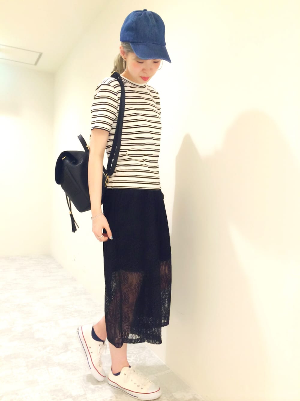 おはようございます( • ̀ω•́ ) GWが終わり、今日からまた学校や仕事が始まりますね❗️ 皆様は、どんな連休を過ごされましたか?🚙 楽しいお話、たくさんできるといいですね😊 本日は、レースのガウチョパンツをご紹介します! 黒のレースガウチョは裏地がハーフ丈で、ひざ下からは透け感があり、履くだけでトレンドスタイルに✨ 今回はトップスに新作のボーダーTシャツを合わせ、キャップとスニーカーでカジュアルにまとめました👟 コンパクトなボーダートップスはシンプルで着やすく、ボトムを選ばず使えるので着回し力抜群🌟 レースガウチョは合わせるトップス次第で、セクシーにもきれいめにも使える優秀アイテムです💕 新作アイテム続々入荷しておりますので、ぜひアズノゥアズへGWのお話をしに遊びにいらして下さい☺️