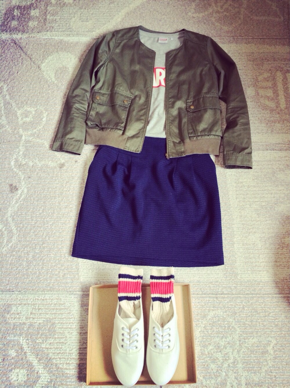 ジャケット*テチチ トップス*GU スカート*ジーナシス 靴下*靴下屋 くつ*GU