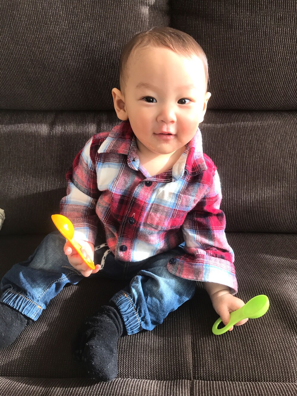 何かもたせないとなかなか撮らせてくれないので、計量スプーンをもたせてご機嫌とってパシャパシャ📸 今日も寒いけど、皮膚科へ行きます!