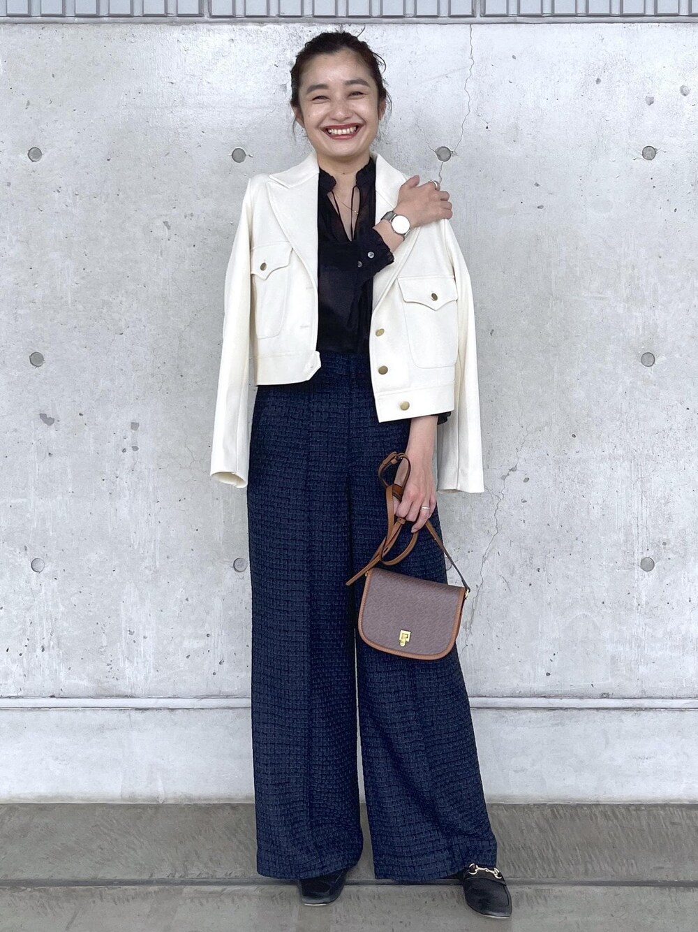辛めのライダースジャケットも ホワイトにすると やさしい雰囲気に仕上がります♡