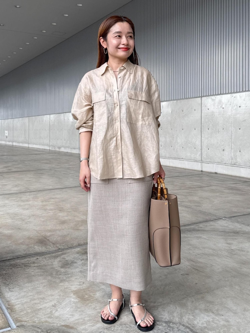 大好物なニュアンスカラーのコーディネートをご提案 同系色のカラー合わせは、異なる素材の組み合わせがコーディネートのポイントです! ぜひ、お試しください♡