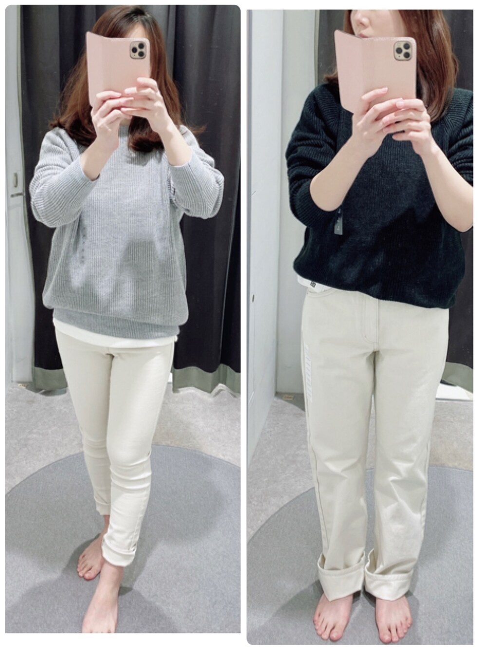 UNIQLOチェック 2色コーデを練習したい パンツの形違いを試着 スキニーの方が綺麗め✳︎