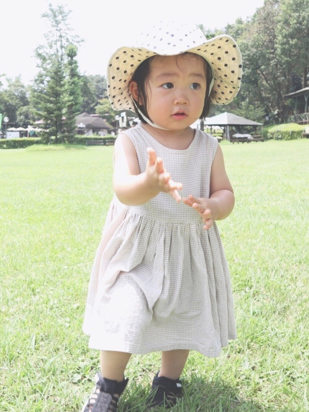 このサイズ感、とっても好き(*˘︶˘*).。.:*♡ 帽子はツバが大きめで、顔に日が当たる事もないし邪魔そうにもしないから、この夏大活躍していました! イフミーとコラボのブランシェスのサンダル、履かせやすいし歩きやすそうで、娘も元気に走り回っています♪