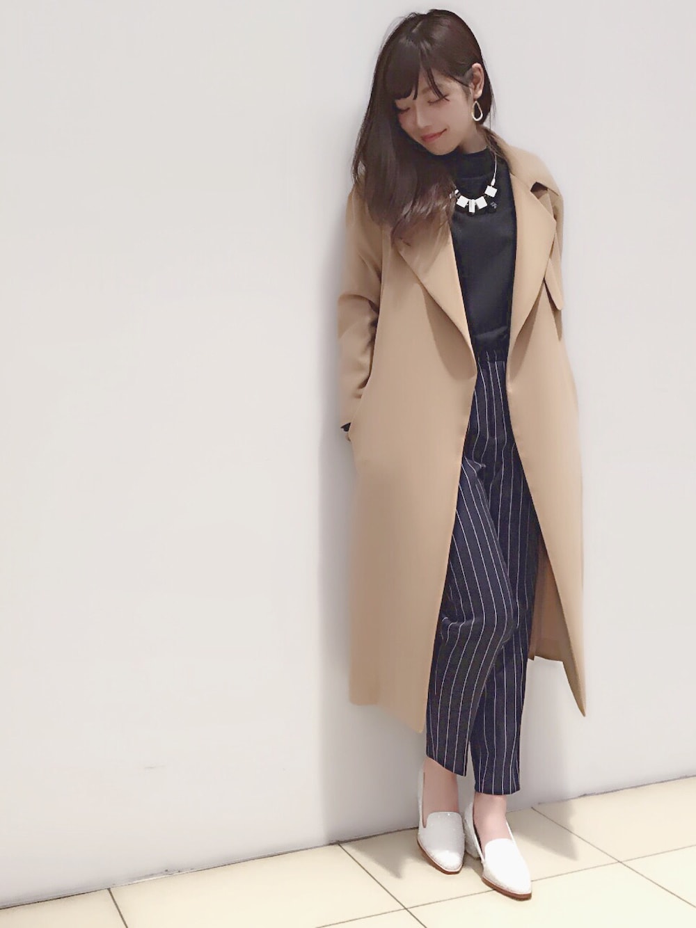 滑らかなジョーゼット素材とたっぷりのロング丈がこなれ感を演出してくれるトレンチコート。 細みシルエットのストライプパンツと白の太めヒールのパンプスで気の抜き過ぎない大人コーデ。 見て下さった方ありがとうございます♡ インスタもぜひ♡ studious_womens_shinjuku