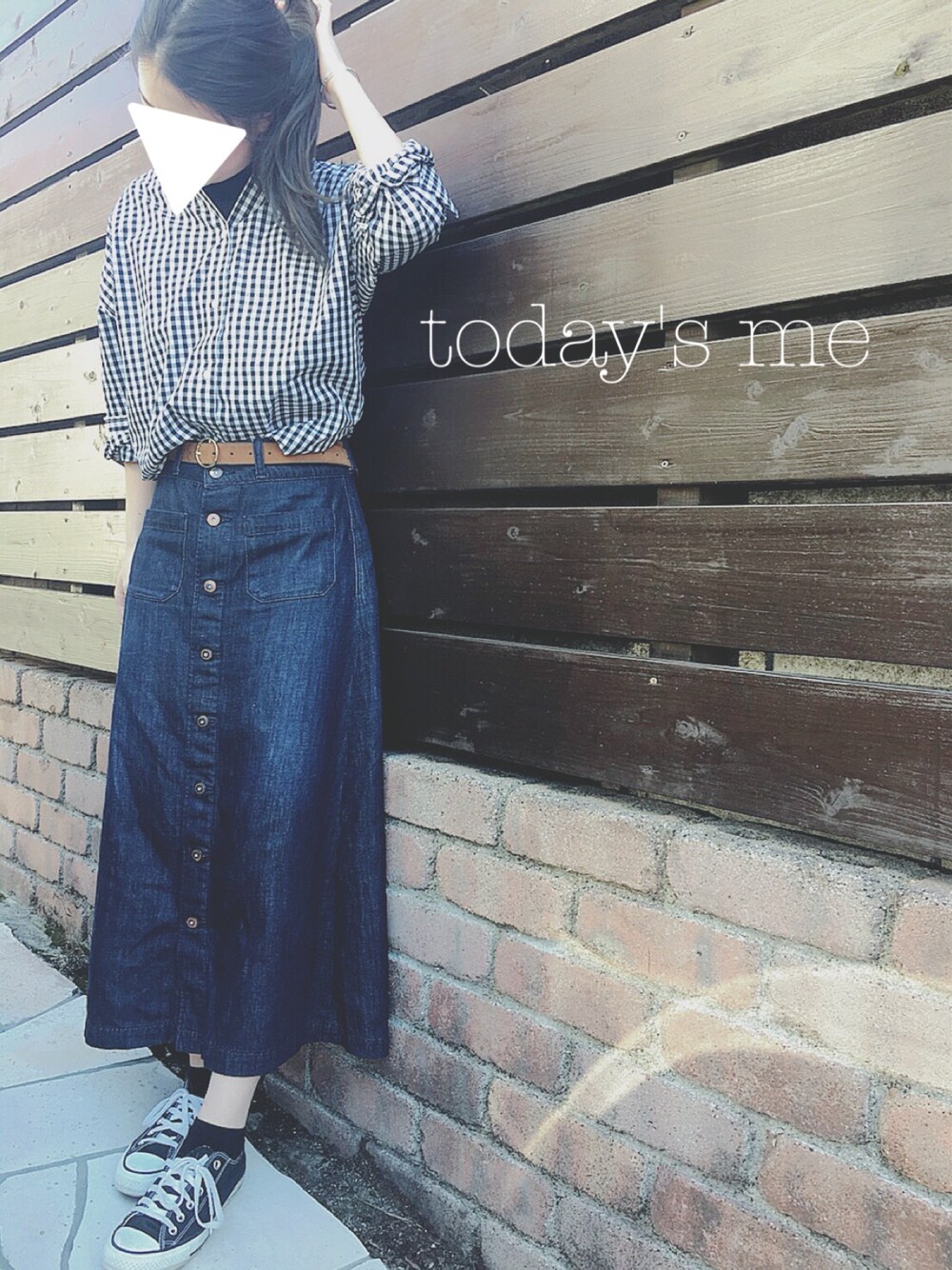 today's me♡ ギンガムチェックシャツ ヘビロテ中...💋 可愛すぎるシャツは デニムと合わせればいける🤘♡