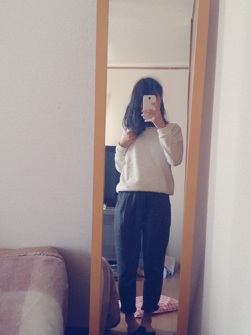 ハニーズで買った花柄のやつ👏 パンツはTOBUのちょっと高めのやつ🙌 よそ行きですな💕