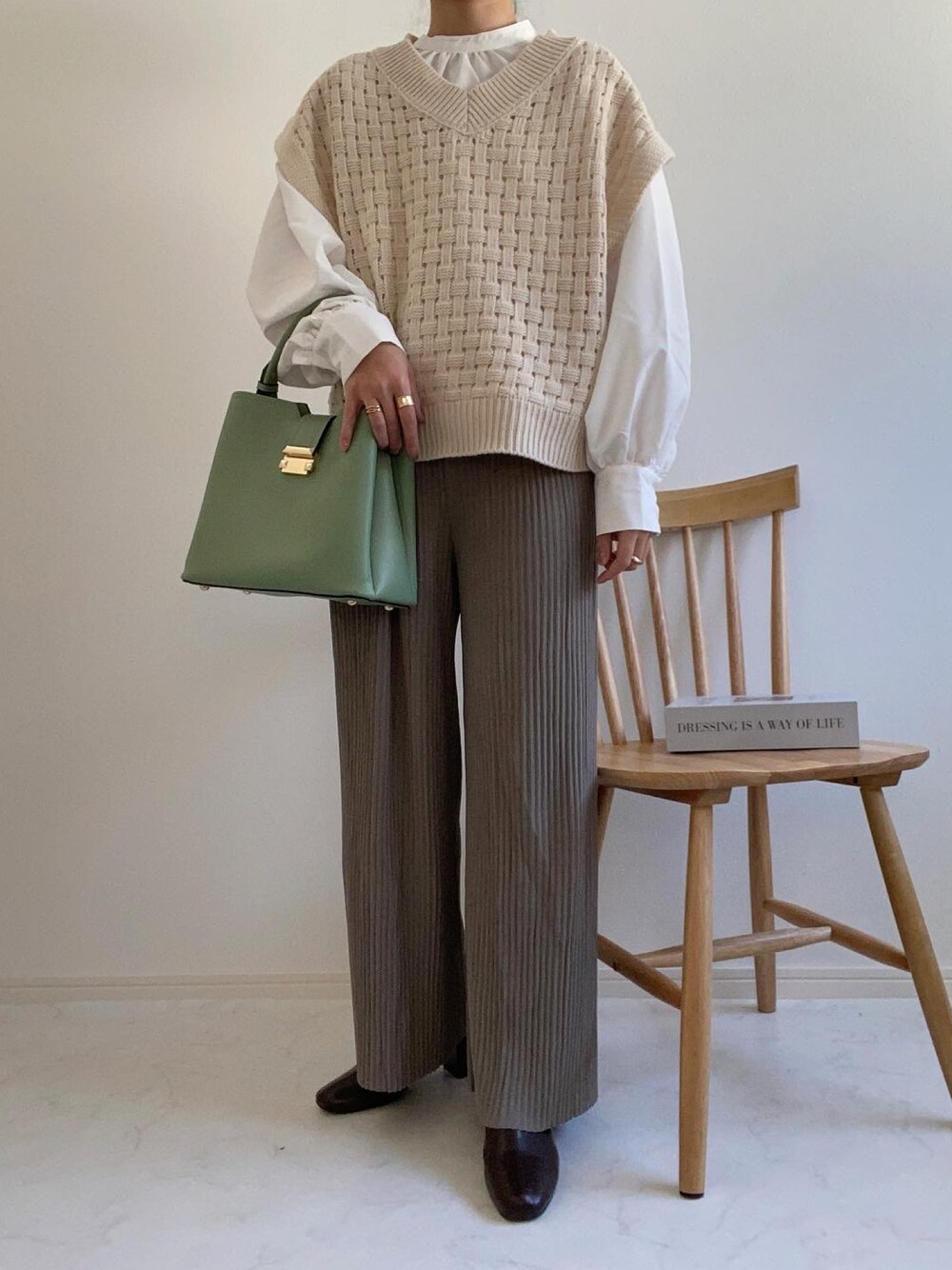 namiのハンドバッグ「【High-Line】スクエアスタッズフラップバッグカラーミディ」を使ったコーディネート
