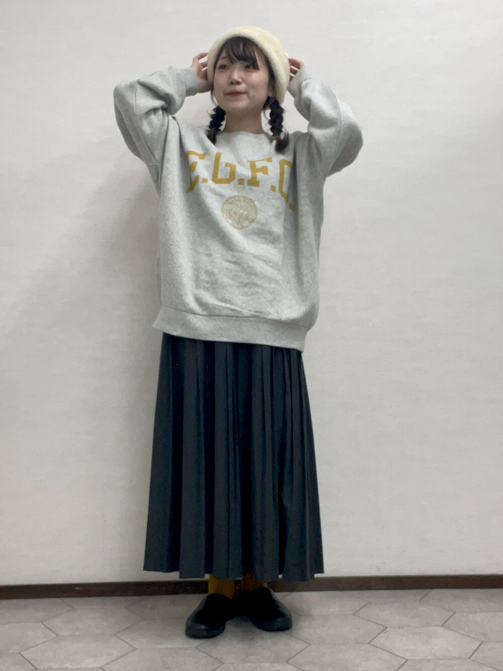 スウェット、かなりシルエットが可愛いです◎ ゆるっと長めなので、気になるお尻周りもすっぽり隠れました😌 タートルやブラウスとの重ね着も絶対楽しいです🙂↕️ ロゴの色がお色味によって違うので,ぜひお気に入りを見つけてくださいね𓏸𓈒 プリーツスカートは秋ムードを高めてくれます♩ 今からのシーズンはトップスが分厚くなりがちなので、スカートはボリュームの落ち着いたプリーツスカートを一枚持っておくと必ず活躍しますよ🍂