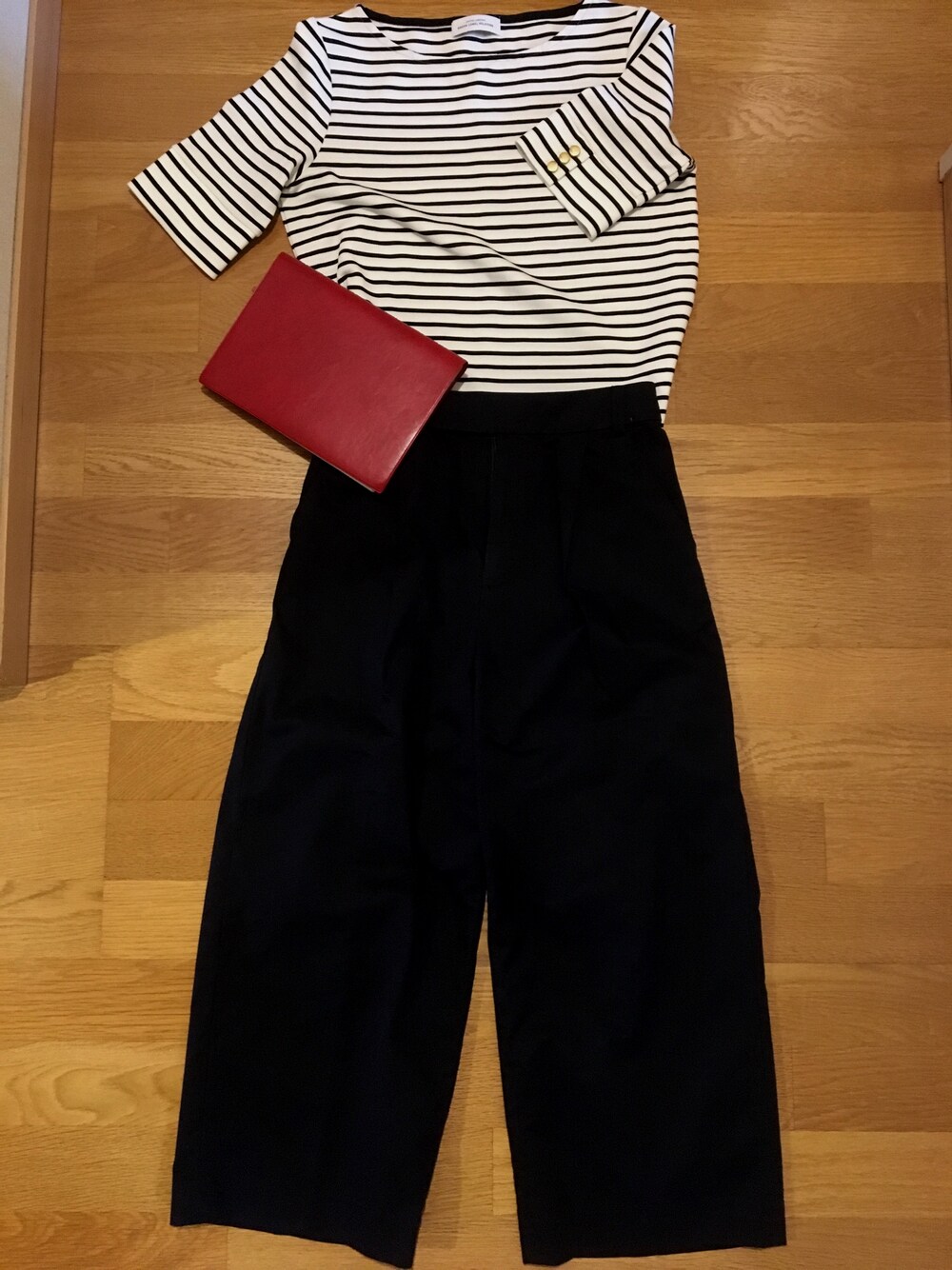 かなり久しぶりに更新してみました。 このパンツが使えすぎて、仕事用にもプライベートにも重宝しています⁂ ボーダーのトップスは去年購入したもので、今年も大活躍です。 これに赤のレペットとか合わせたいなぁと思いながら、持ってないので普段使ってる手帳を添えてみました◎笑