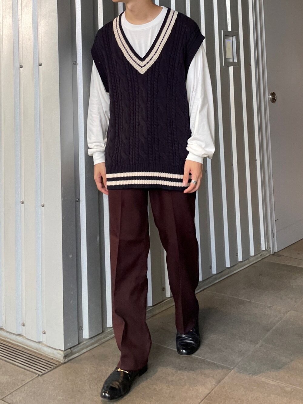 な〜さのベスト「チルデンニットベスト」を使ったコーディネート