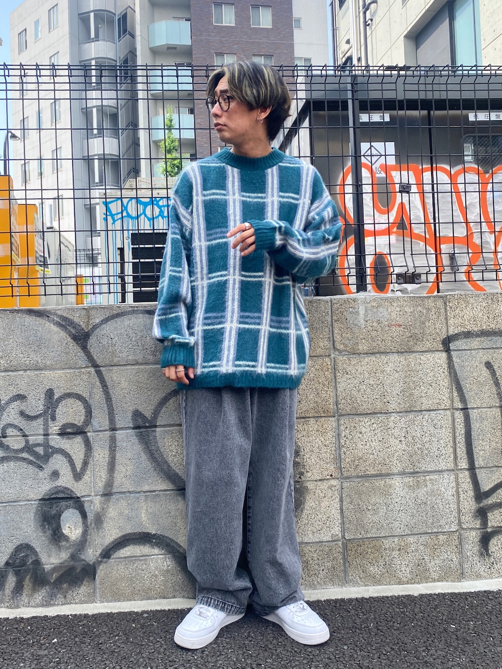 今年はやっぱり、ざっくりニット🧶 ビッグシルエットすぎるぐらいが◎! 大きめのチェックで古着っぽい印象に☺️
