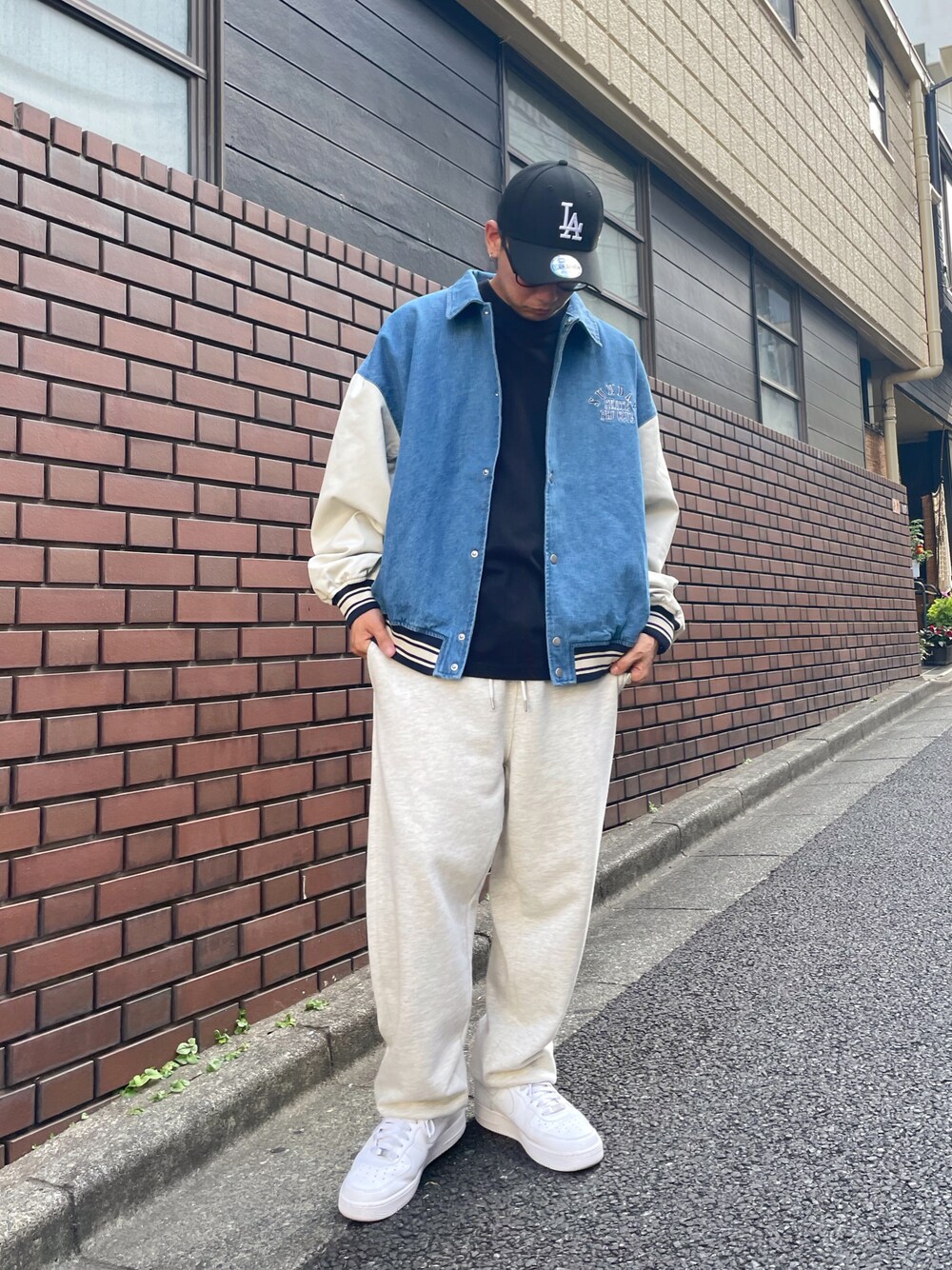 ストリートで使えるデニムのスタジャンは袖切り替えになってて シンプル且つお洒落に使えます★☆ スウェットパンツもこの秋もおすすめ🔥✨