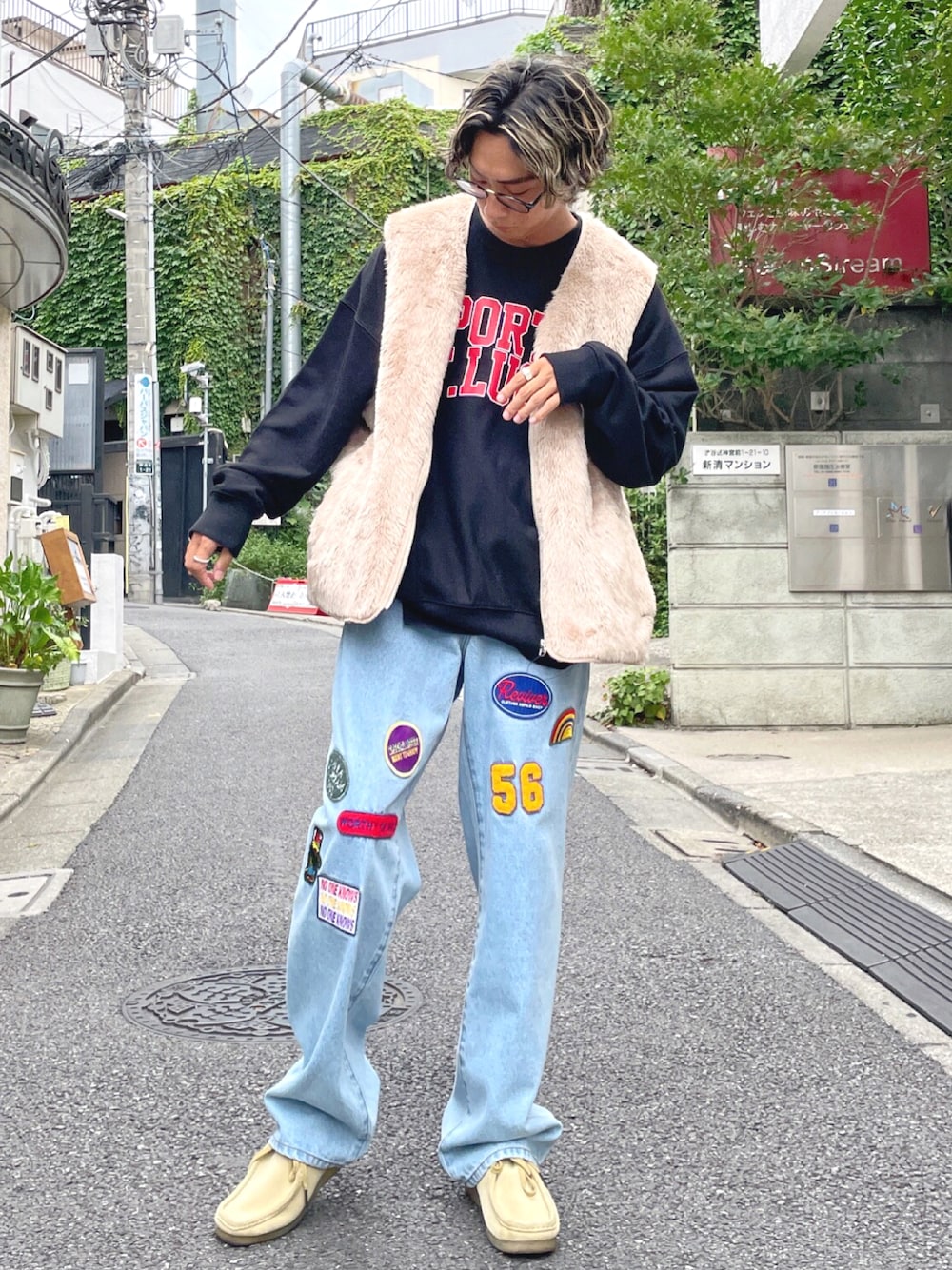 渡辺康二(WEGO STAFF)のベスト「WEGO/フェイクファーBIGベスト」を使ったコーディネート