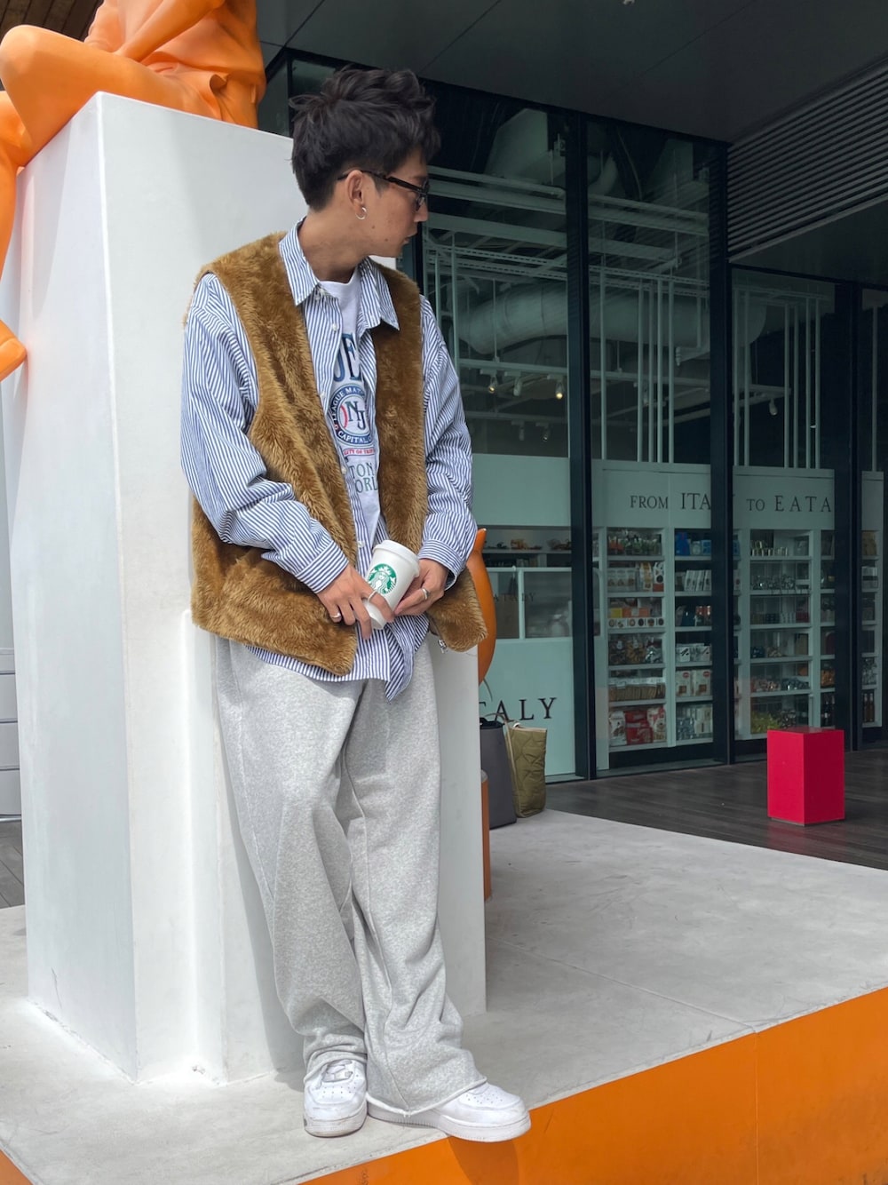 渡辺康二(WEGO STAFF)のベスト「WEGO/フェイクファーBIGベスト」を使ったコーディネート