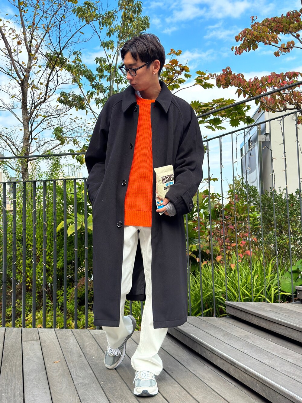 渡辺康二(WEGO STAFF)のステンカラーコート「WEGO/ニットメルトンステンカラーコート」を使ったコーディネート