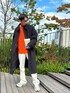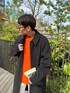 ⚫️⚪️ BLACK×WHITE ⚪️⚫️ シンプルなステンカラーコートのインナーには 今年人気のオレンジニットで華やかに🧶!