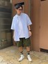 🔵🟢 BLUE × KAHKI 🟢🔵 ビッグシルエットのシャツとカーゴショーツの組み合わせはgood!!!