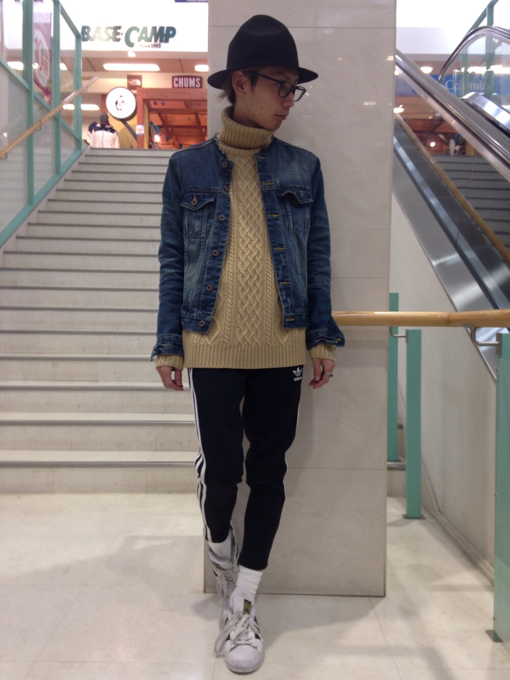 ハイネック×ノーカラーは今年マストの 着こなし術ですね‼︎ adidasのトラックパンツで スポーツテイストの演出を スーパースターが汚くなってる。 手入れちゃんと行っていこう
